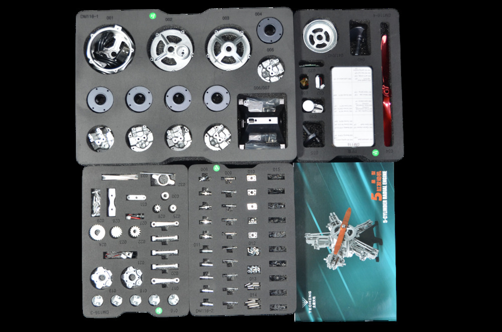 Gifts: The 5-Cylinder Radial engine kit is packaged in a colorful, durable metal gift box. That ensures that the kit arrives intact. Plus, it makes an excellent presentation when given as a gift. It is a great idea for anyone interested in mechanical things.