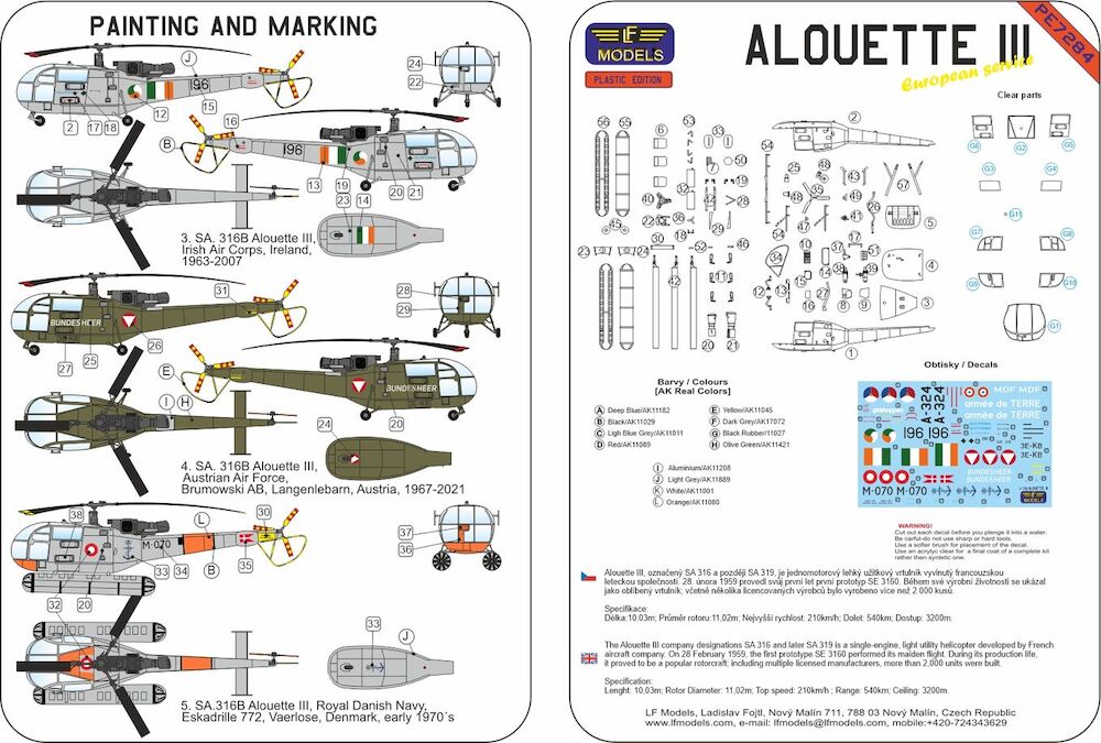 Alouette III European Service (Dutch Air Force Demoteam Grasshoppers, French Army, Irish Air Corps, Austrian AF, Danish AF)