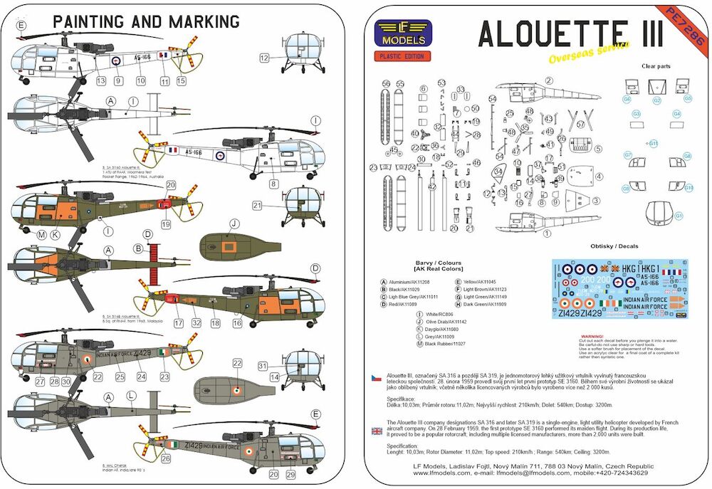 Complete plastic kit with 5 decal options (Rhodesia, Portugal, SAAF, Angola, Bophuthatswana).
