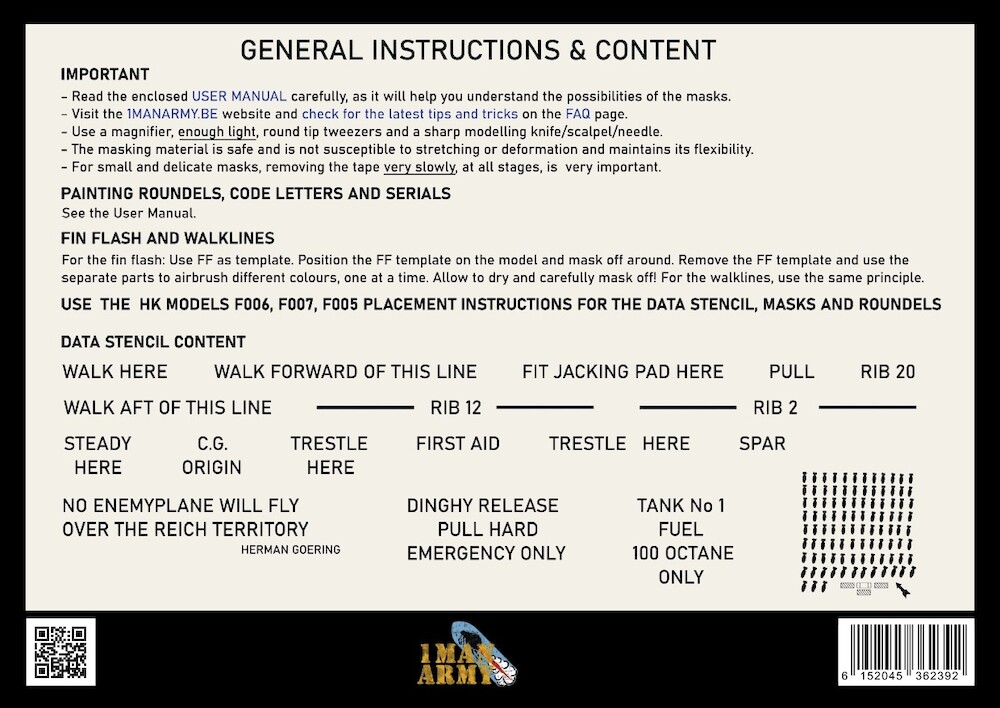 1ManArmy is specialized in the production of high definition airbrush paint masks for WWII aircraft scale models in 1/32 scale.