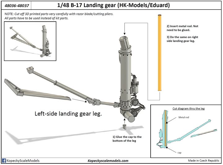 Correct length landing gear for HK models B-17.