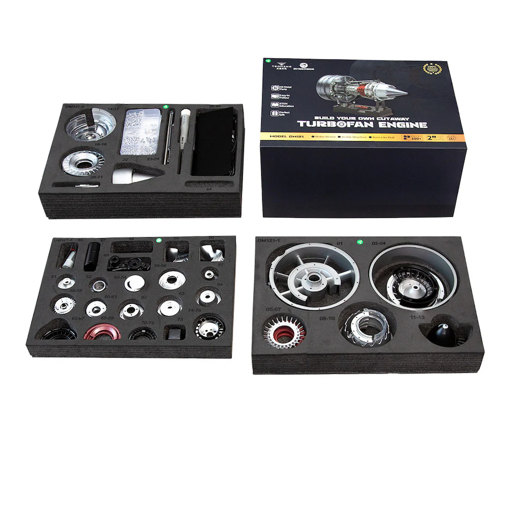 Constructed mainly from high-strength aluminum and zinc alloys, TECHING DM121 Turbofan Engine Model offers excellent corrosion resistance and sturdy durability. Its industrial metallic finish elevates it from a DIY kit to a high-end collectible and desktop showpiece. The solid, weighty feel of metal parts enhances the building experience and long-term display appeal.