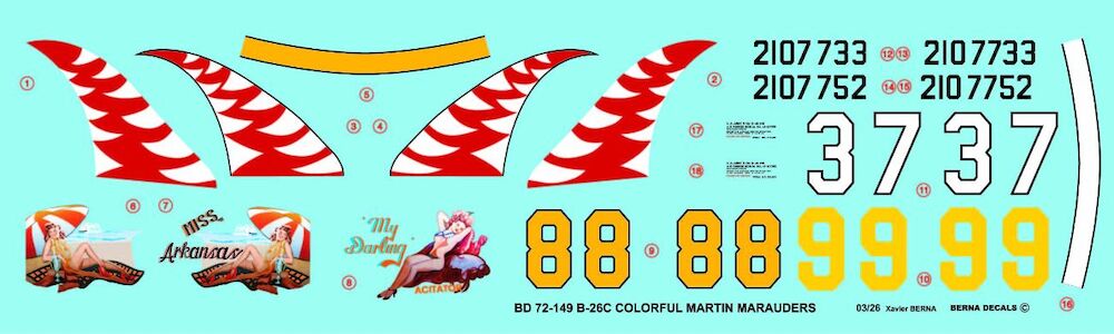 Colorful Martin B-26C-45-MO Marauders (3 Schemes)  BD72-149