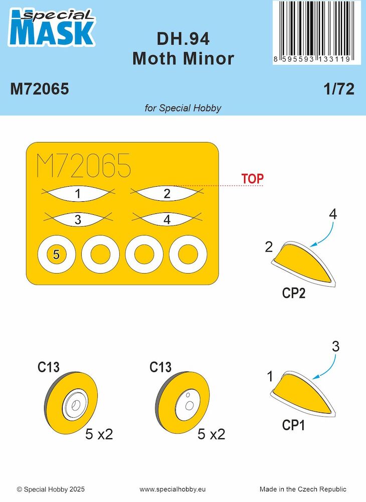 De Havilland Dh94 Moth Minor canopy and wheel Mask (Special Hobby)
