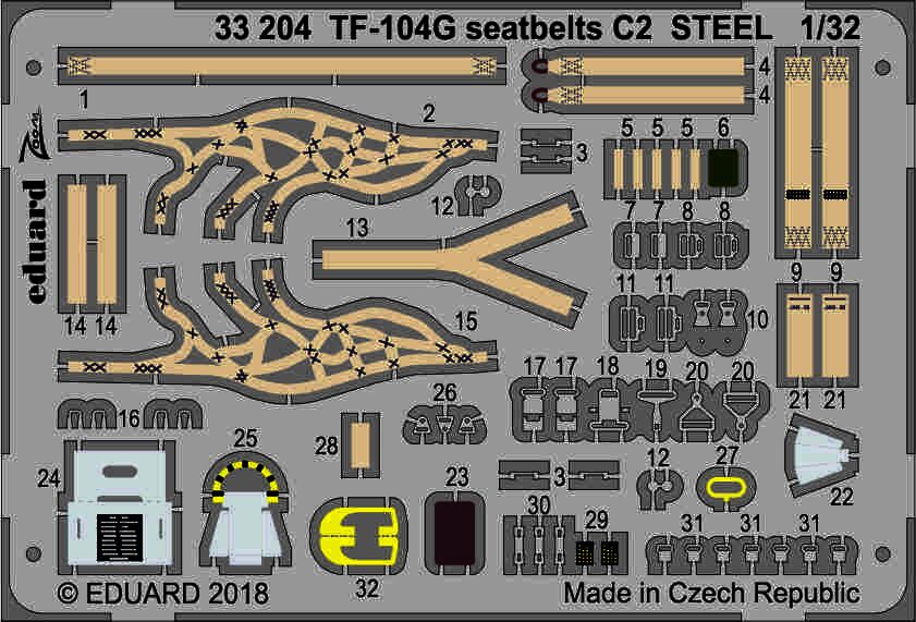 Detailset Lockheed TF104G Starfighter Seatbelts - steel- for C2 Seats (Italeri)  E33-204