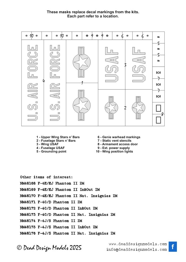 F106A/B Delta Dart National Insignia and markings mask (Revell, Monogram, Trumpeter kits)  NM48304
