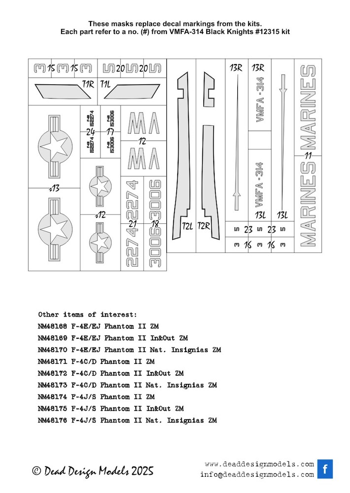 F4B/N Phantom National Insignia and markings mask (Academy/Eduard kits)  NM48291