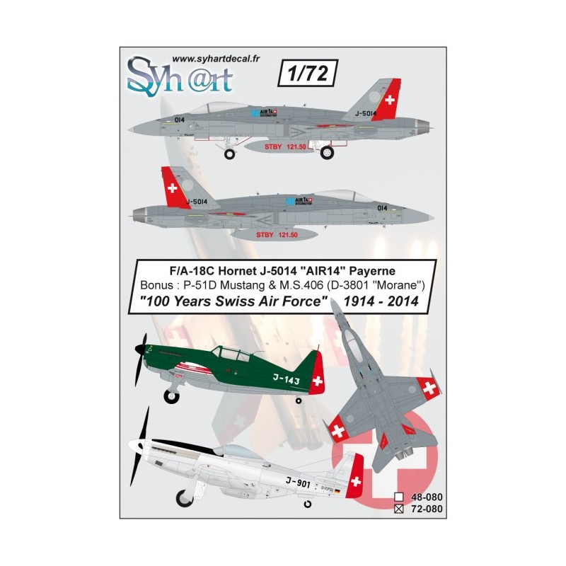 F/A18C Hornet (J-5014 'Air 14' Payerne) + bonus MS406 and P51 Mustang "100 years Swiss AF" 1914-2014  72-080