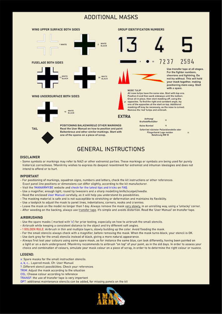 its innovative masks allow not only to airbrush markings, squadron numbers etc , but also the smallest instruction stencils, hereby offering an alternative for the decals with carrier film and allowing a true 'painted-on' result.