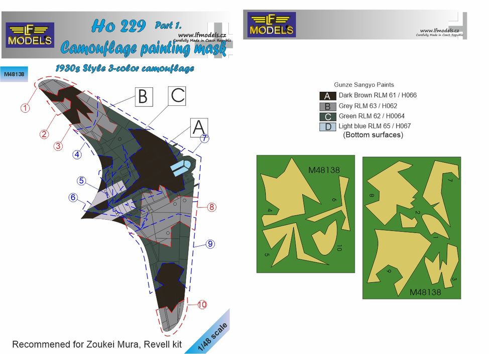Horten Ho229 Part 1. Camouflage Painting Mask 1930s 3-color style camouflage