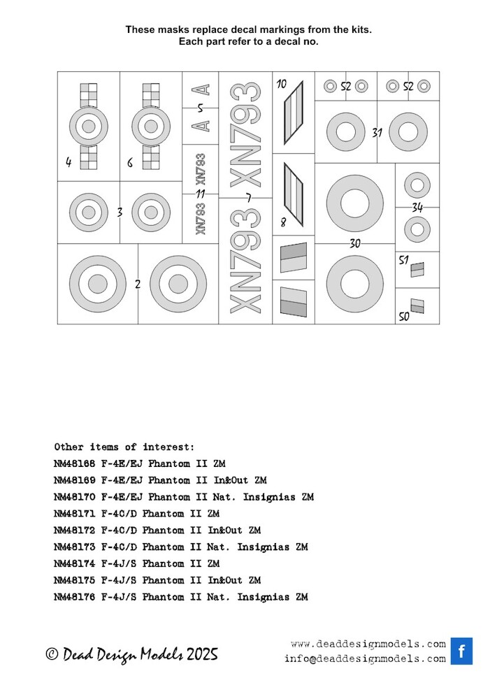 Lightning F1, F2, F6 National Insignia and markings mask (Airfix)  NM48318