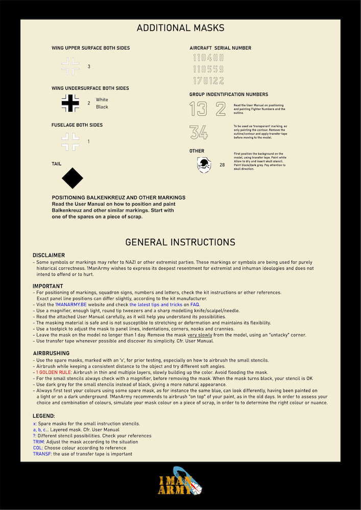 1ManArmy is specialized in the production of high definition airbrush paint masks for WWII aircraft scale models in 1/24 scale.