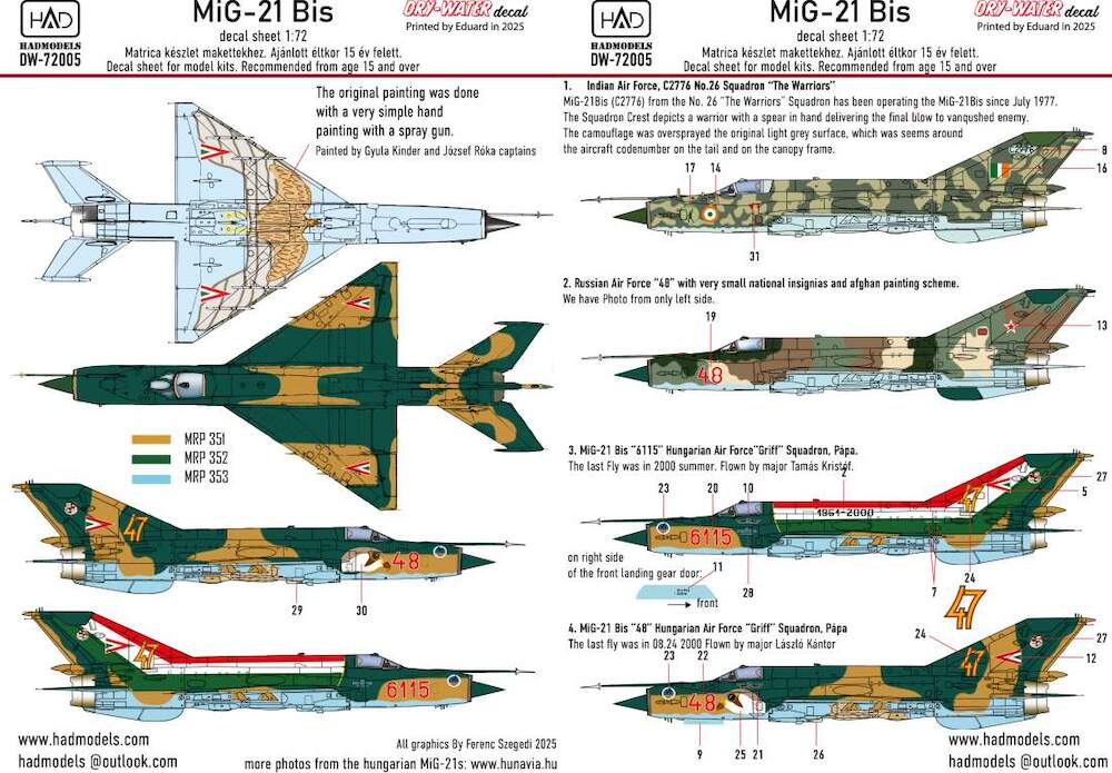 Mikoyan MiG21Bis (Hungarian AF, Indiuan AF, Russian AF) Dry Water Decal