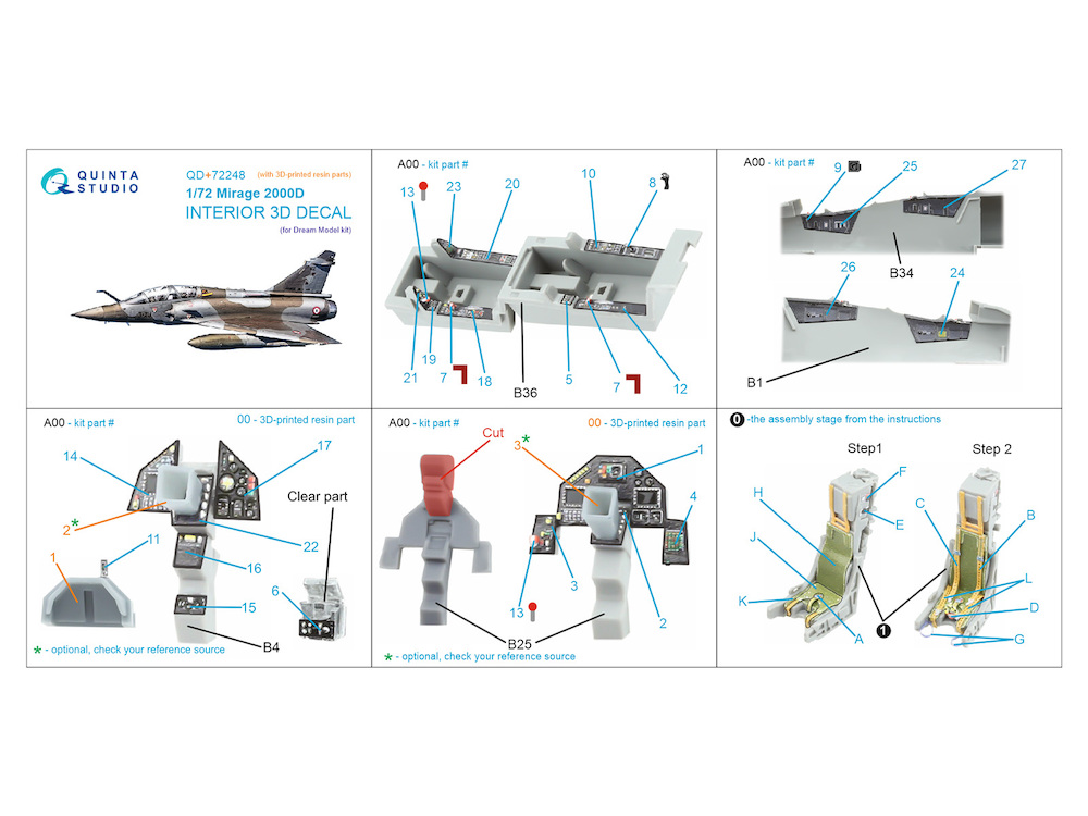 Mirage 2000D Interior 3D Decal and resin parts (Dream Model)