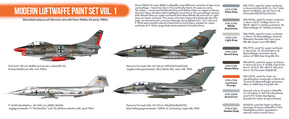 | Modern Luftwaffe Paint set Vol. 3 (6 colours) | Hataka Hobby | HTK-CS61 | € 14.83 | ||