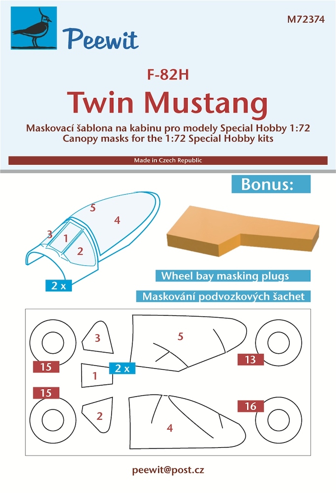 North American F82H Twin Mustang Canopy, Wheel and wheelwell Mask (Special Hobby)
