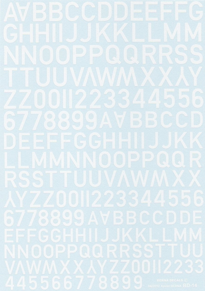 Numbers & letters white RAF code (10, 12 & 14mm)