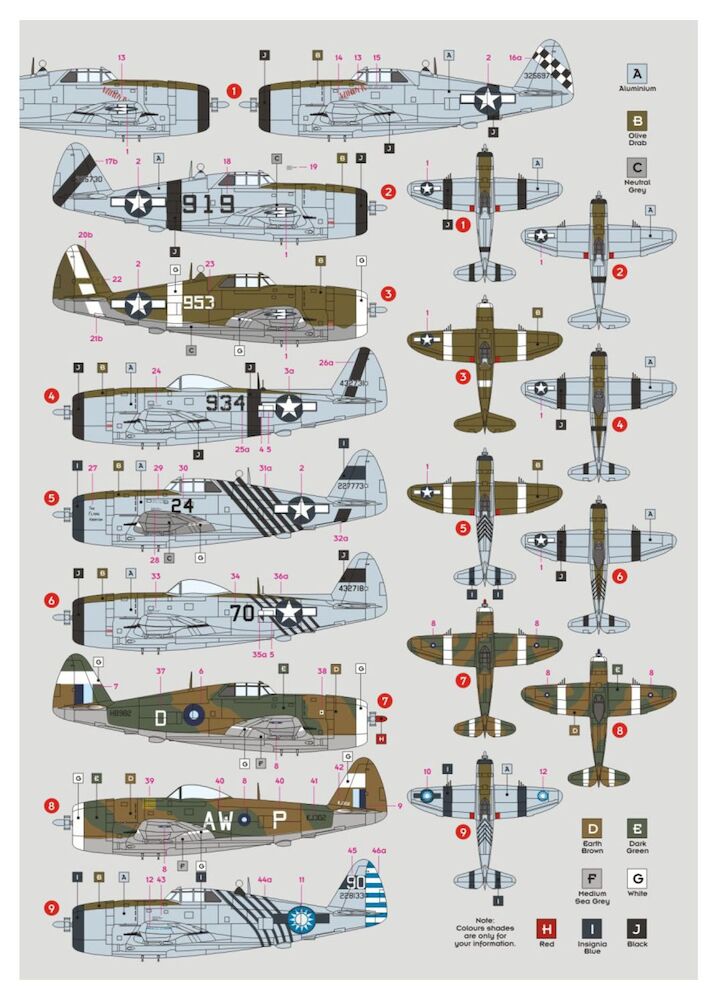 P-47D Thunderbolt, China-Burma-India 1944-45 (9 schemes)