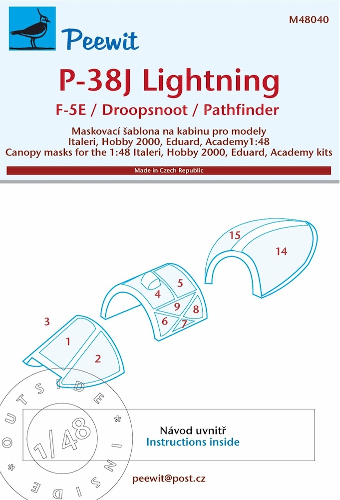 P38J Lightning , F5E, Droopsnoot and Pathfinder Canopy , glass nose and Wheel Mask (Italeri, Hobby 2000, Academy)