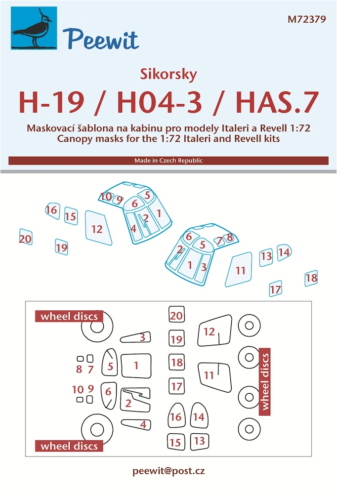 Sikorsky H19/HO4-3, Whirlwingd HAS7 Canopy, Cabin window and wheel Mask (Italeri, Revell)