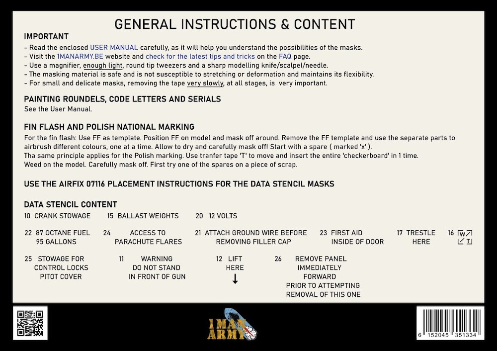 1ManArmy is specialized in the production of high definition airbrush paint masks for WWII aircraft scale models in 1/32 scale.