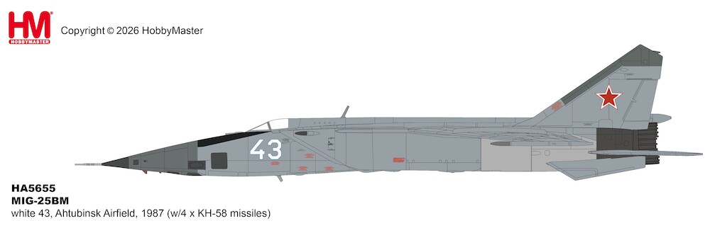 MIG-25BM white 43, Ahtubinsk Airfield, 1987 (w/4 x KH-58 missiles)  HA5655