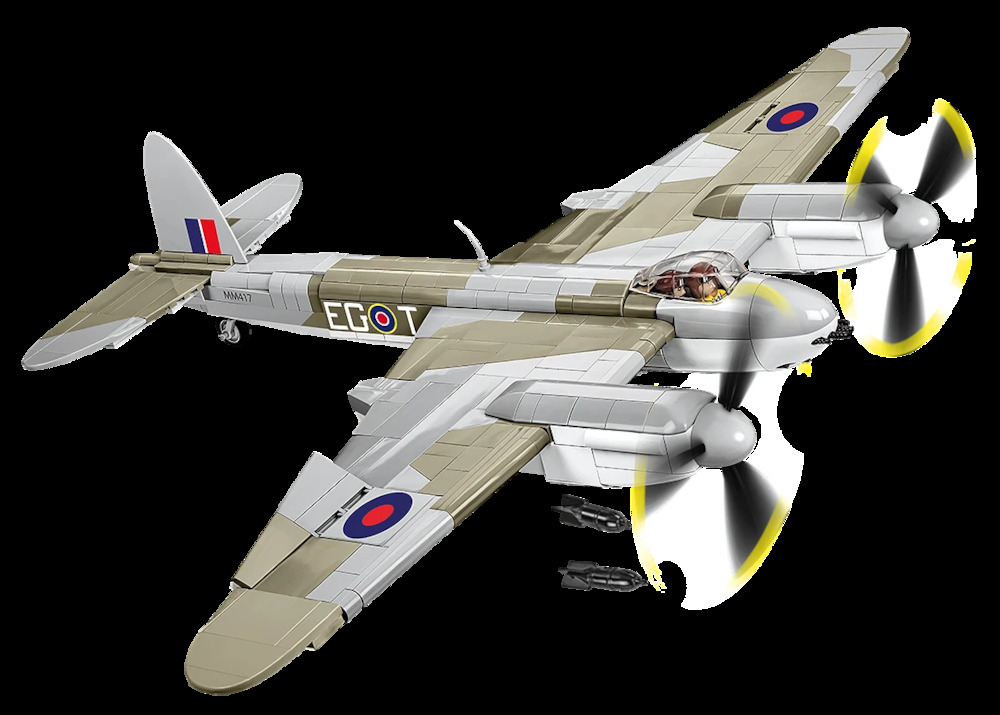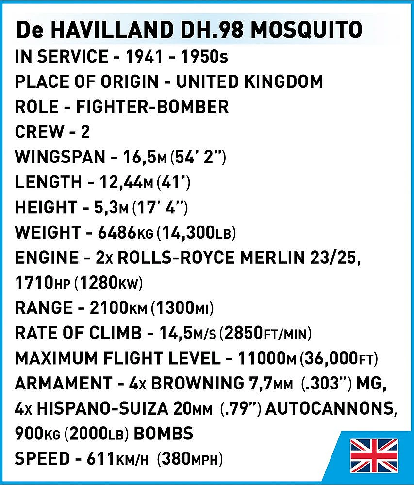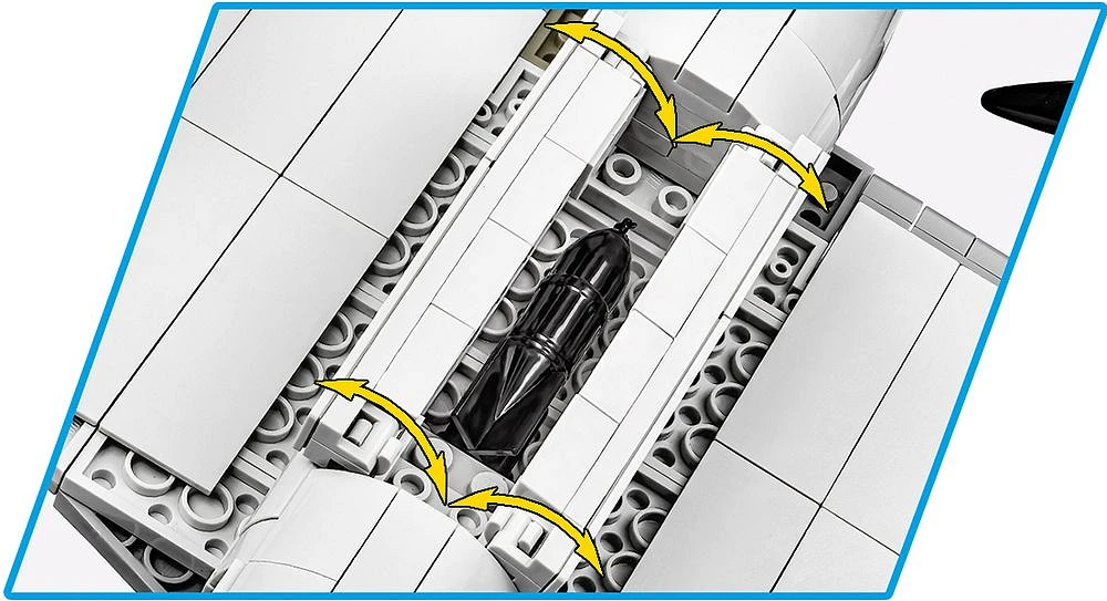 Built completely from scratch on a 1:32 scale, the model consists of 710 high-quality COBI construction blocks. The model has many moving parts such as rotating wheels with rubber tires, moving propellers and ailerons. In the cabin you can place the pilot figure included in the set! The blocks have been covered with high-quality prints that do not wear off even during intensive use. This is a great model for all aviation enthusiasts. Thanks to the faithfully reproduced proportions and details of the aircraft, the model will be a great decoration for any collection of young or adult enthusiasts of history and aviation. The whole set is completed with a display stand, a bomb and a brick with the model name printed on it.