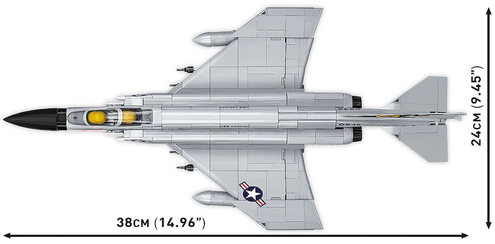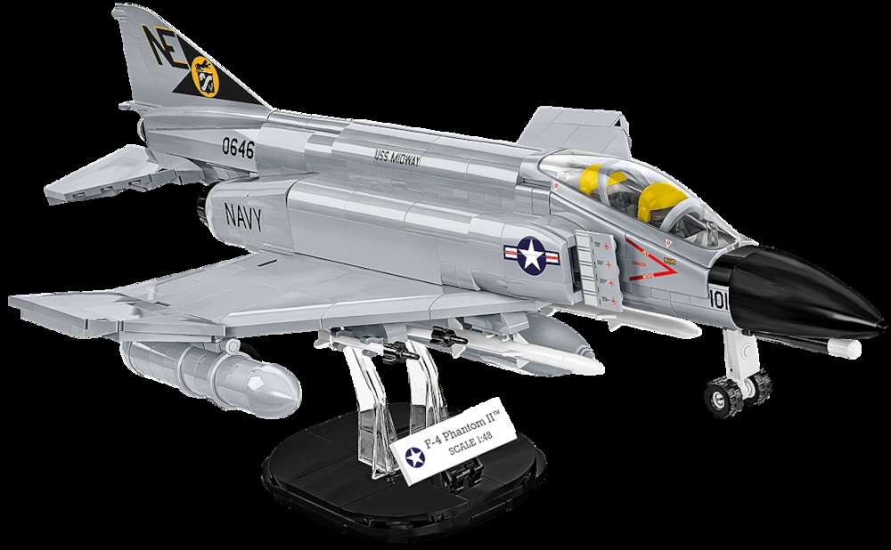 With 703 COBI construction blocks you can build the iconic F-4 Phantom II aircraft in units from the USS Midway aircraft carrier, which can be visited in San Diego (USA). The licensed set was built based on the plans of the F-4 aircraft maintaining the highest attention to block details. The plane has characteristic prints, movable ailerons and detachable landing gear and weapons. The cockpit opens and can be used to place symbolic mini-figures of pilots. The set includes a block display stand and a plate containing the name and scale of the plane. The 1:48 scale model complements the series of planes released as part of the Armed Forces collection! Build history, piece by piece, with COBI.