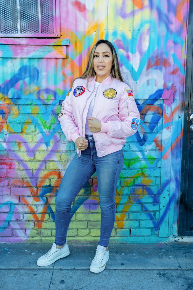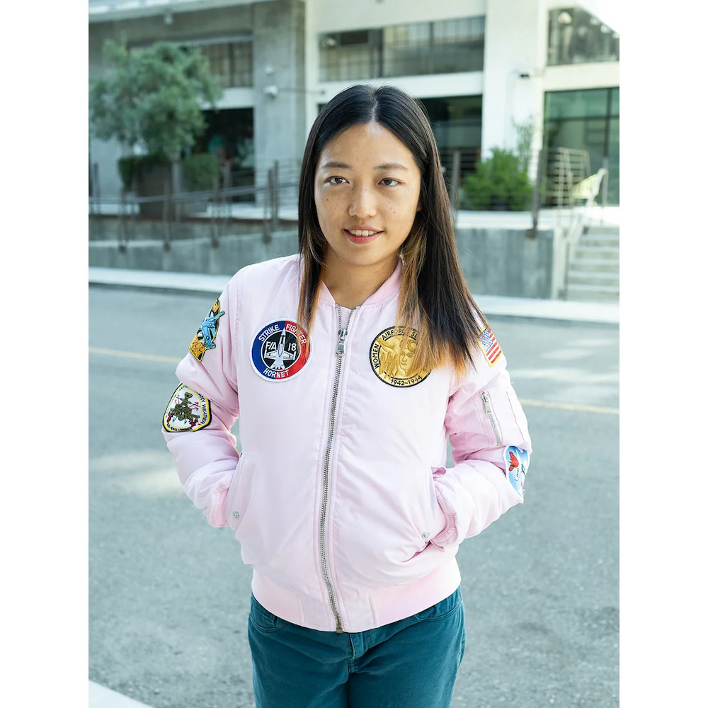 Lady's MA-1 Flight Jacket (7-Patch/Pink) Large